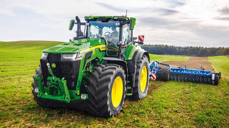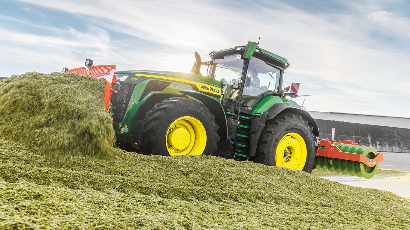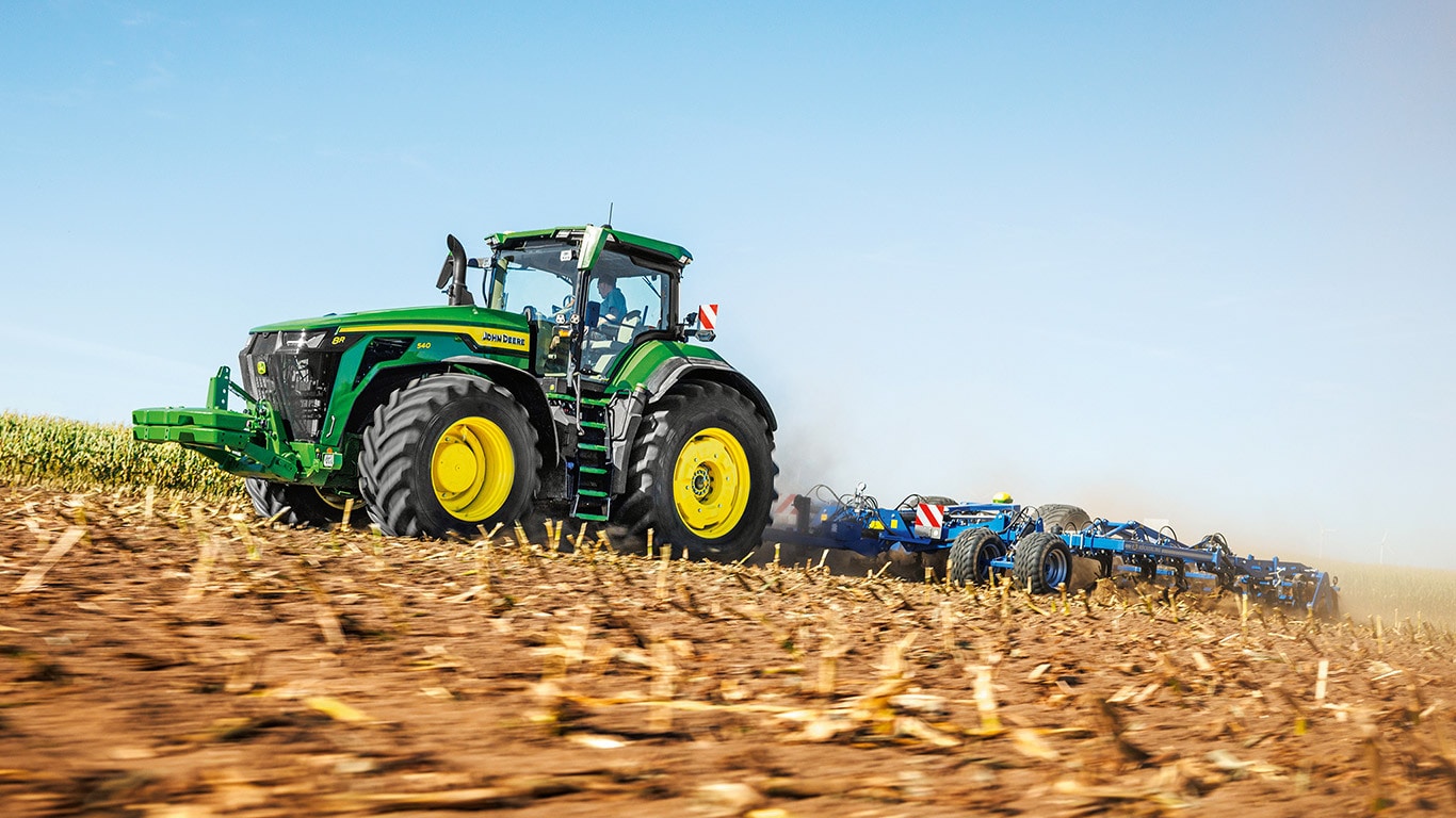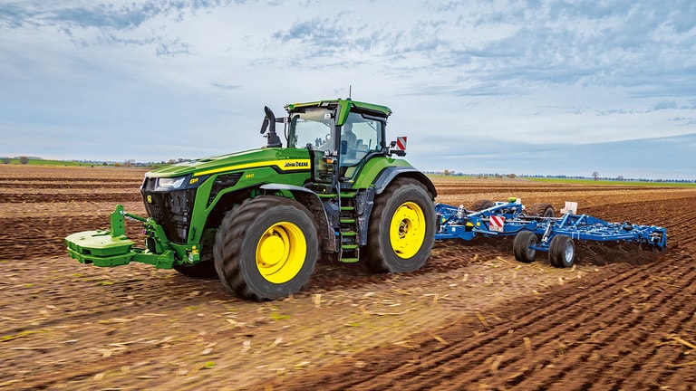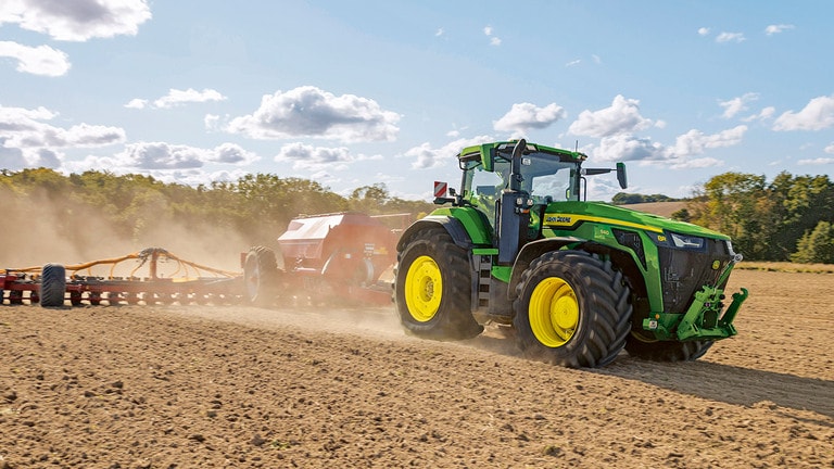 Новите трактори 8R High Horsepower осигуряват необходимата тяга за най-тежките прикачни приспособления. С Peak Power IPM двигателят JD14 осигурява до 634 к.с. точно когато е необходимо, за да се постигне максимална производителност при всякакви условия. Уникалната трансмисия eAutoPowr™ осигурява безстепенно ускорение и до 8% по-добро предаване на мощност в сравнение със стандартните безстепенни хидромеханични трансмисии*. Новите 8R High Horsepower са оборудвани с задни гуми с размер до 2,30 м, предни гуми с размер до 1,85 м и еднолинейна централна система за напомпване на гумите за превъзходна защита на почвата, пренос на мощност и гъвкавост.