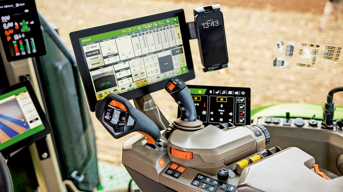 Трактори от серия 8 с доказани 3,30 м³ CommandView™ 4 кабина с регулируемо окачване или ActiveSeat™ II, 65° завъртане на седалката, три опори за краката, радио със сензорен екран от второ поколение с безжична Apple CarPlay® и Android Auto™, плюс премиум 6.1 аудиосистема, задайте еталон в комфорта на кабината. Новата електрически регулируема седалка с функция за запаметяване, вентилация на врата и опции за масаж предлага първокласен комфорт дори и при дълги работни дни. Следващо поколение. CommandARM™ с нов удобен дисплей, нов CommandXPlus или CommandXPro ви позволява да управлявате всички ключови функции на върха на пръстите си.