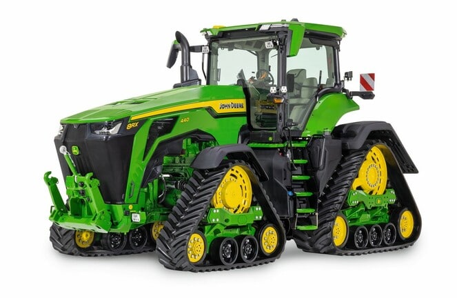 Уникалните четири вериги на 8RX High Horsepower осигуряват изключителна защита на почвата и сцепление: c ширина на верижните ленти до 30 инча, по-широки ходови ролки за 30-инчови задни вериги и нов дизайн на направялващите елементи с чашковидна форма, 8RX поставя стандартите за опазване на почвата. Усъвършенстваната конструкция на ходовата част, сега със задвижващи зъбци и шини за протектора, формовани в гъсеничната верига, и новите средни ходови ролки с ултрависоко молекулно тегло (UHMW), изработени от издръжлив железен поли-гумен композитен материал с трайно свързване, тези вериги осигуряват ненадмината производителност и надеждност при най-тежки условия.